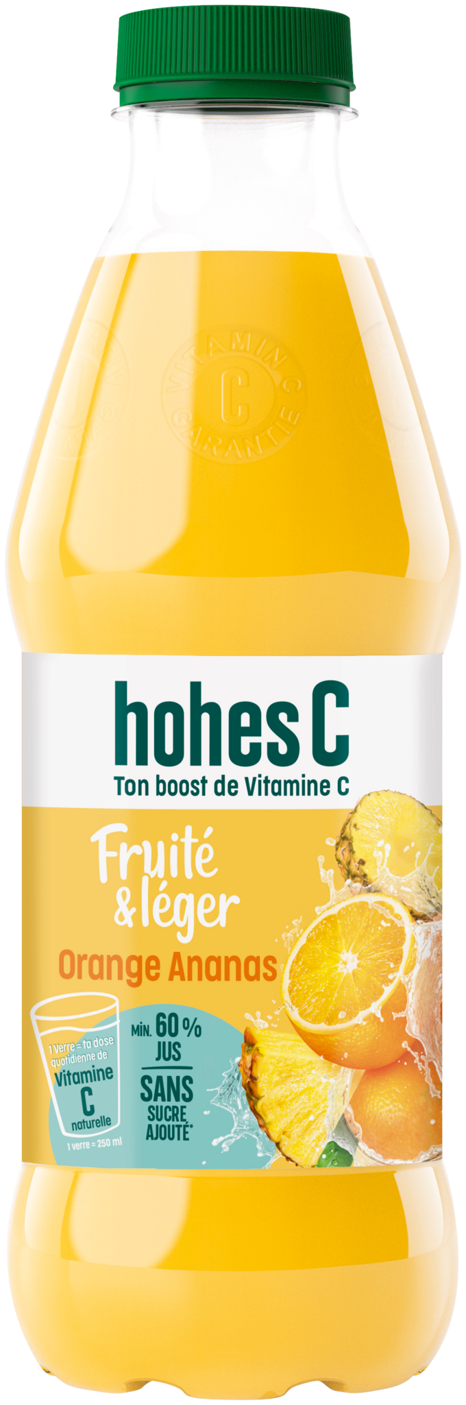 Frais et fruité, hohes C Fruité et Léger vous apporte l'apport quotidien en vitamine C et contient au minimum 60% de jus de fruits.