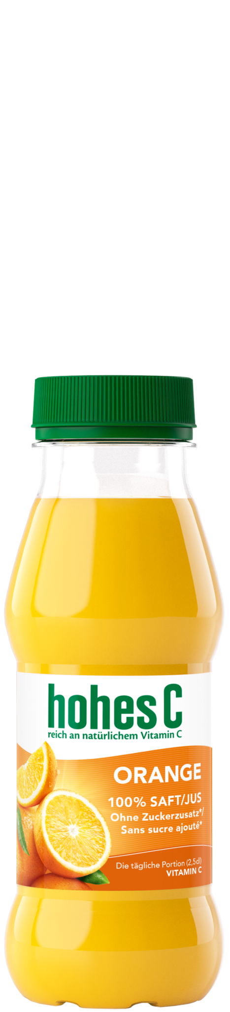 Weil wir Dir das Beste für den Start in den Tag mitgeben wollen, verwenden wir sonnengereifte aromatische Orangen für unseren Vitamin C-reichen Saft hohes C Orange. 1 Glas (2,5dl) deckt den Tagesbedarf an Vitamin C.