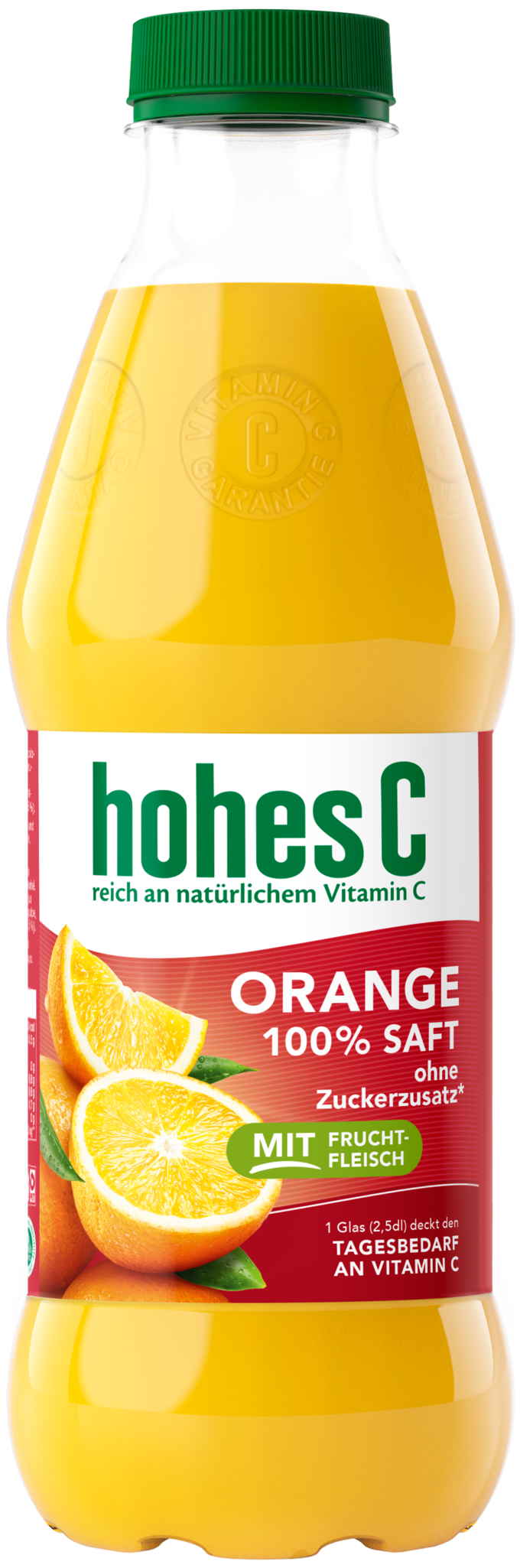 Weil wir Dir das Beste für den Start in den Tag mitgeben wollen, verwenden wir sonnengereifte aromatische Orangen für unseren Vitamin C-reichen Saft hohes C Orange mit Fruchtfleisch. 1 Glas (2,5dl) deckt den Tagesbedarf an Vitamin C.