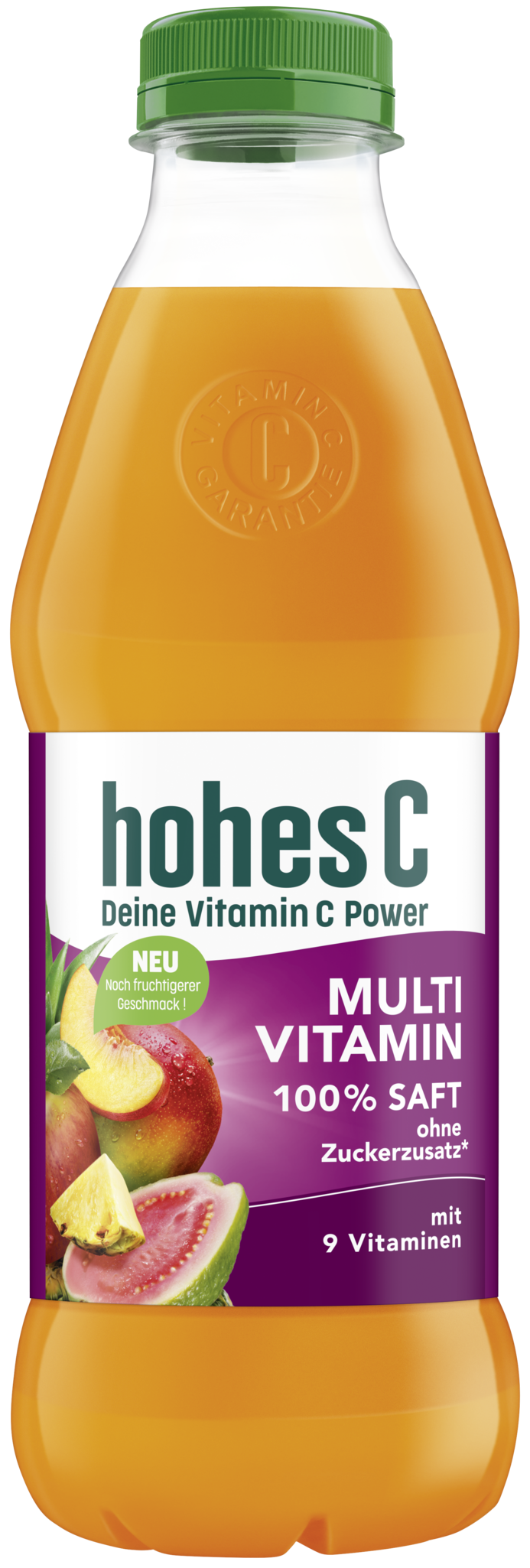 Schon gewusst? Bereits ein Glas hohes C Multivitamin (0,25 L) deckt den Tagesbedarf an Vitamin C - und zwar mit natürlichem Vitamin C aus der Acerola. Vitamin C trägt zu einer normalen Funktion des Immunsystems und zu einem normalen Energiestoffwechsel bei. Eine ausgewogene Ernährung und gesunde Lebensweise werden empfohlen.